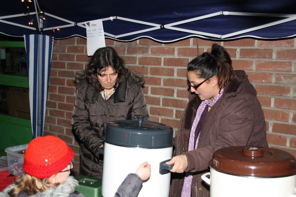 Das Ende der Weihnachtsfeier fand dann wieder vor dem GMZ auf unserem Weihnachtsmarkt bei Glühwein und Würstchen statt, wo auch der Weihnachtsmann kam und für die Kleinsten wieder Geschenke dabei hatte.