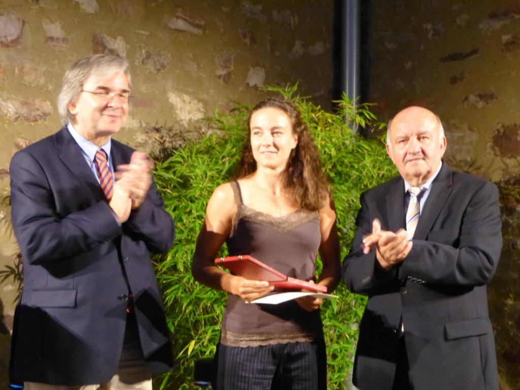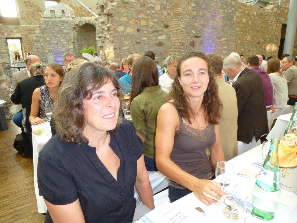 Christiane bekommt die riesige und schwere Bronze-Plakette der Stadt Wiesbaden überreicht
