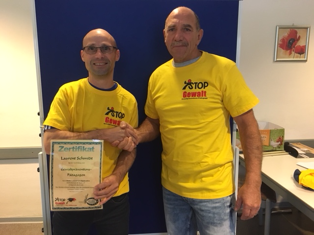 Laurent Schmidt bestand Heute, nach einer zweitägigen Prüfung das Diplom eines Gewaltpräventions-Pädagogen.